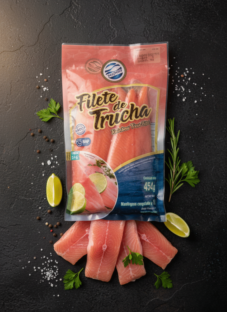 El sabor más puro del agua en su mejor forma. Nuestros Filetes de Trucha Arcoíris provienen de cultivos sostenibles y son procesados bajo los más altos estándares de calidad, garantizando un producto fresco, saludable y lleno de proteínas naturales.